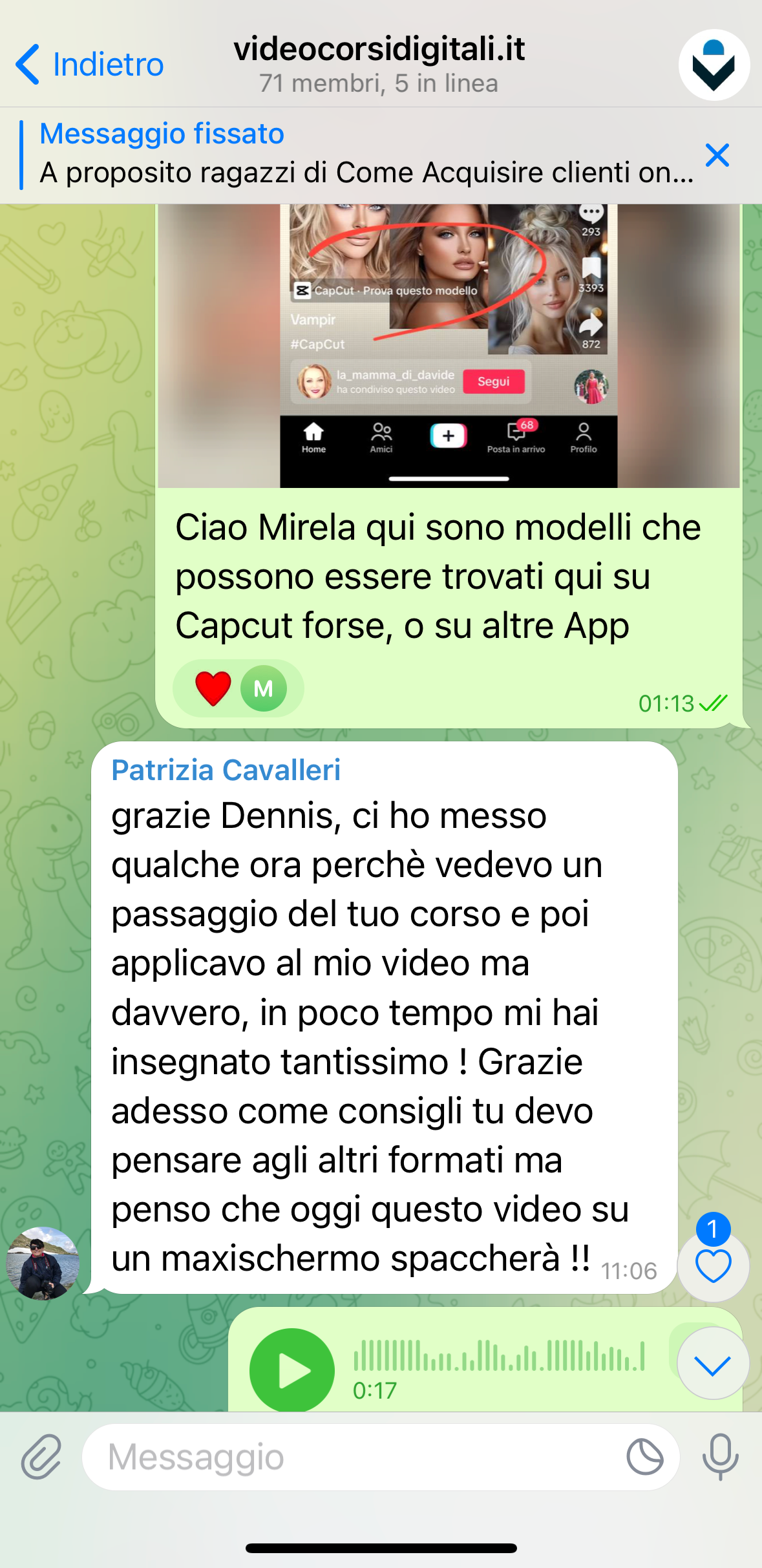 Dentro il corso c’è una lezione con il Link da cliccare per entrare nel gruppo esclusivo su Telegram con tutti gli studenti e Dennis!